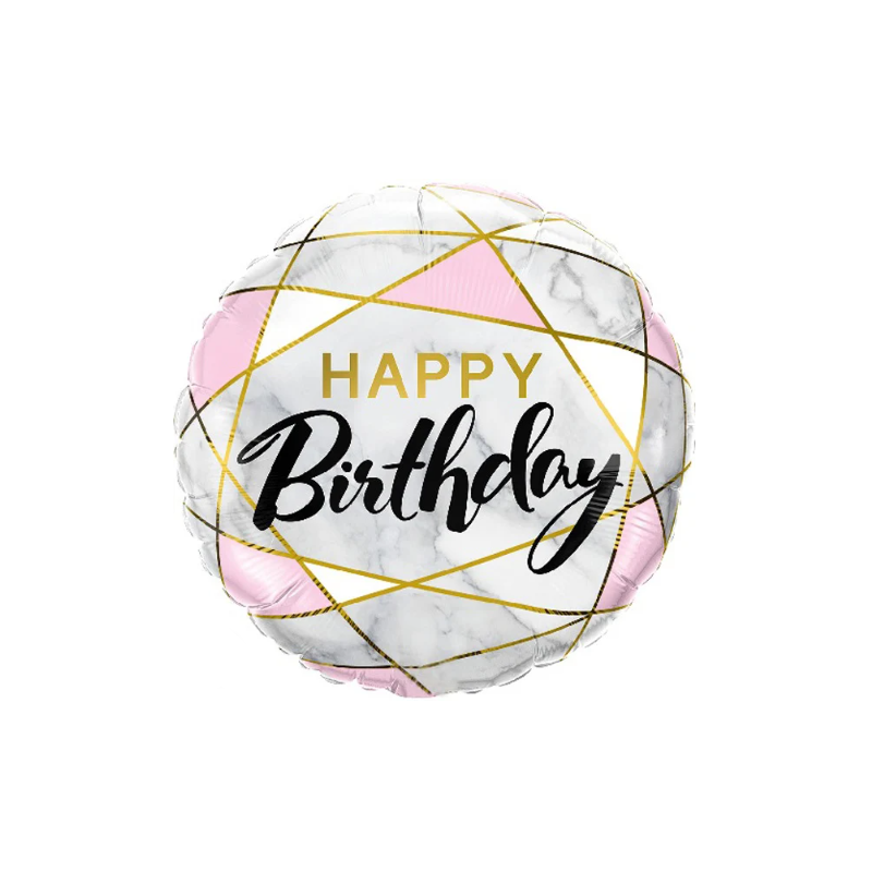 Повітряна кулька фольгована «Happy Birthday мармур» – стильний та сучасний декор для святкування дня народження, який додасть вашому оформленню вишуканості та трендового вигляду.