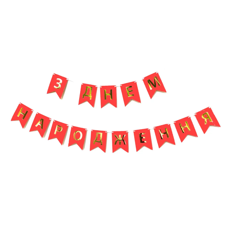 Гірлянда-прапорці З Днем Народження червоні золоті літери