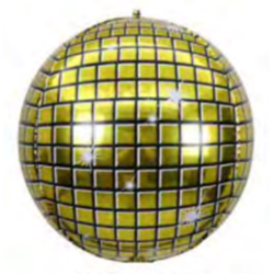 Воздушный шарик фольгированный "Диско шар золота" - это эффектный элемент декора, который создает атмосферу настоящей вечеринки. Стильный дизайн в виде диско шара и металлизированный золотой блеск делают шарик идеальным дополнением для фотозоны, танцпола или праздничного стола.