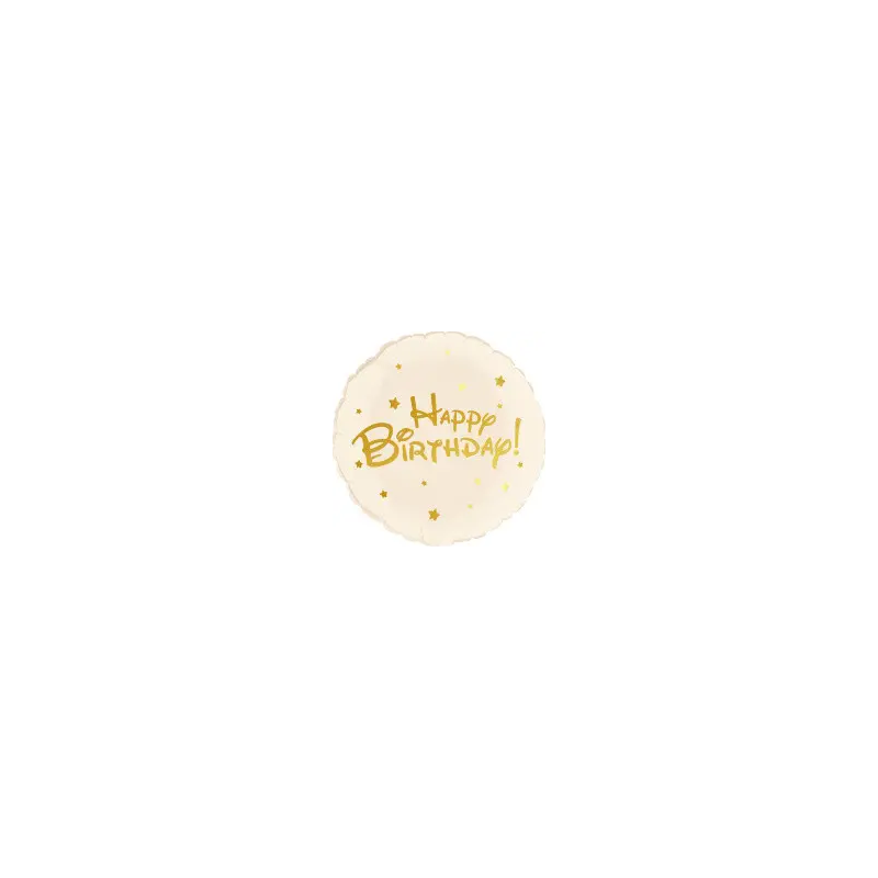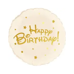 Воздушный шарик фольгированный Happy Birthday кремовый