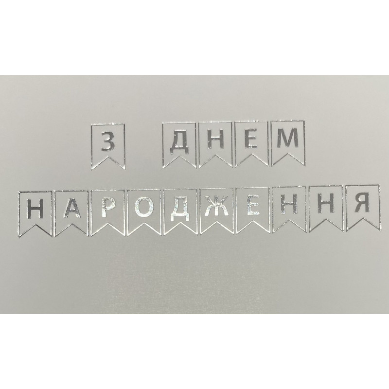 Декорация Гирлянда-флажки С Днем Рождения белые серебряные буквы