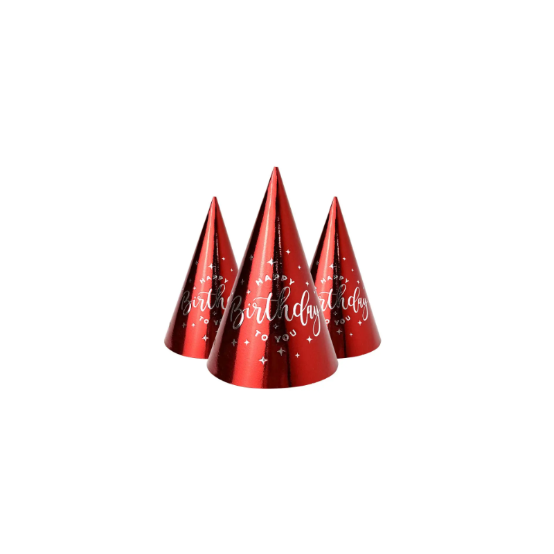 Колпачок Happy Birthday красный серебряное тиснение 1 шт