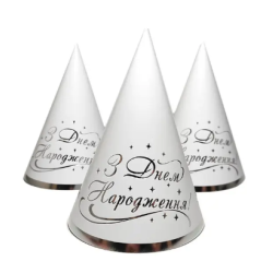 Колпачок праздничный С Днем Рождения белый серебряное тиснение 1 шт