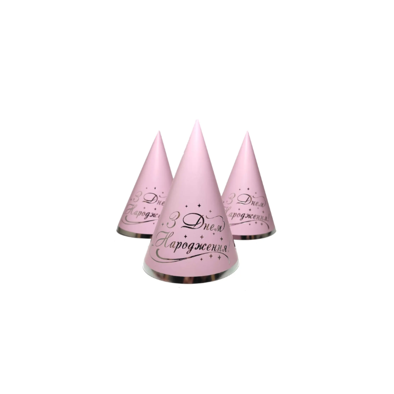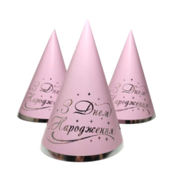 Колпачок праздничный С Днем Рождения розовый серебряное тиснение 1 шт