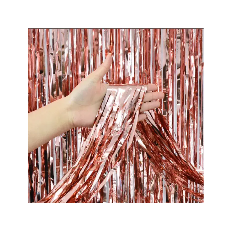Шторка з дощику рожеве золото – стильний та універсальний декор, який миттєво створює атмосферу свята. Завдяки фольгованій поверхні вона красиво блищить та чудово виглядає в інтер’єрі, підсвітці та на фотографіях.