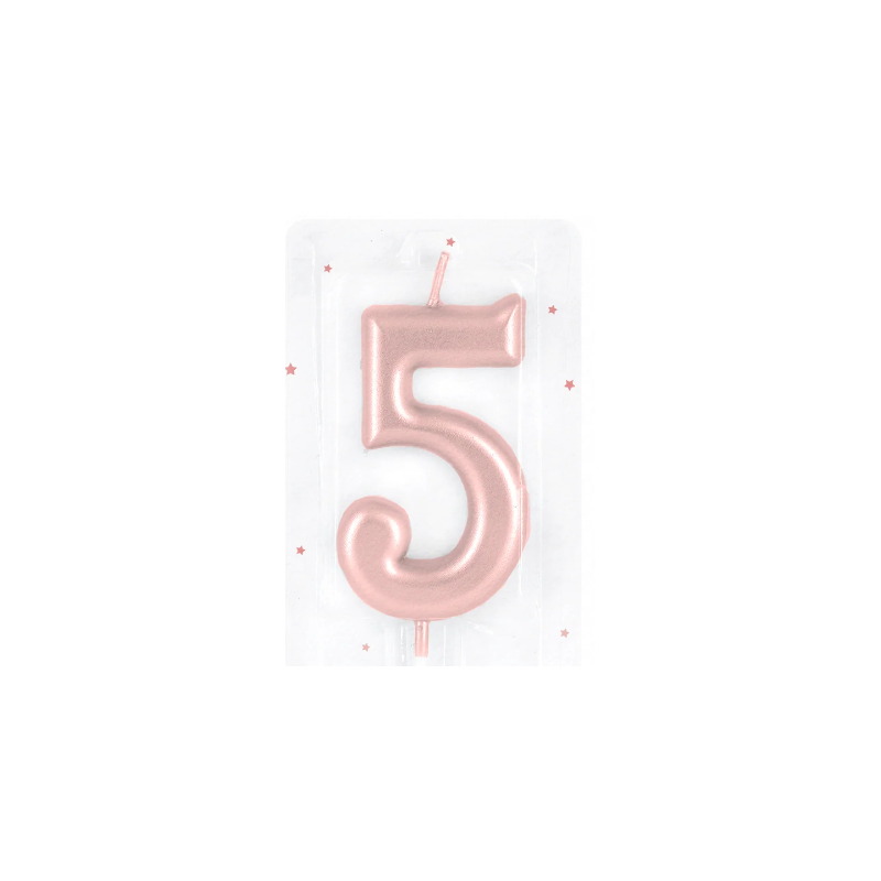 Свічка цифра 5 рожеве золото металік — стильна прикраса для святкового торта, яка ідеально підходить для святкування п’ятого дня народження або будь-якої події з цифрою «5». Вишуканий відтінок рожевого золота з металевим блиском додає десерту елегантності та святкового шарму.